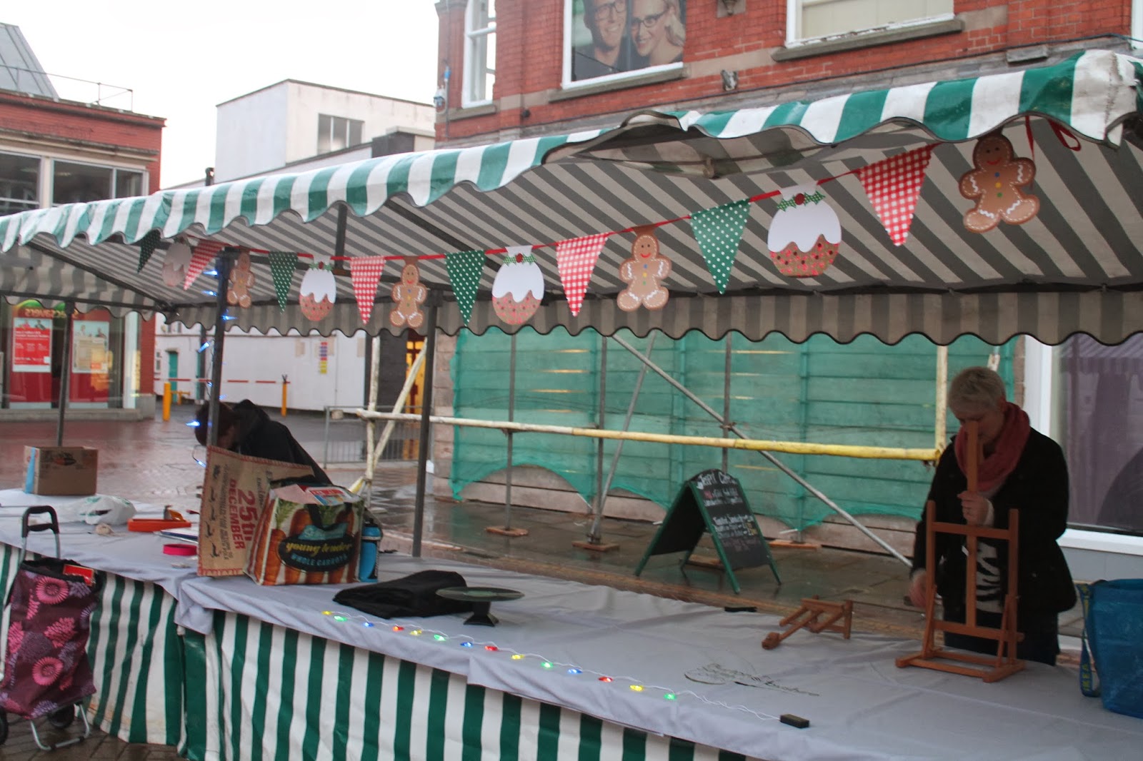 The day started well at 7.30 am with myself and Becki and Rachel arriving early enough to set up the stall in time for 8.30 am. We laid the College table cloths, put up bunting and battery operated Christmas lights bearing in mind health and safety i.e. in a position no one could trip over anything, or get poked in the eye